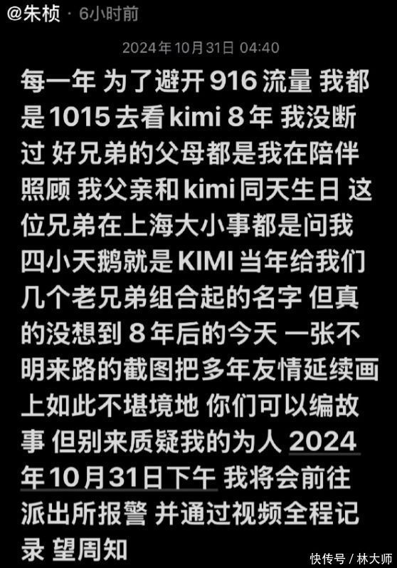 就像朱桢和包贝尔一样,朱桢是被黑在乔任梁的葬礼上嬉皮笑脸。但其实他在乔任梁去世后,是陪伴乔家父母最多的一个了,几乎每年的大日子都会去看望乔任梁。因此网上恶意编造关于他的不实言论,他直接选择报警,态度很刚,也能看出无心无愧。
